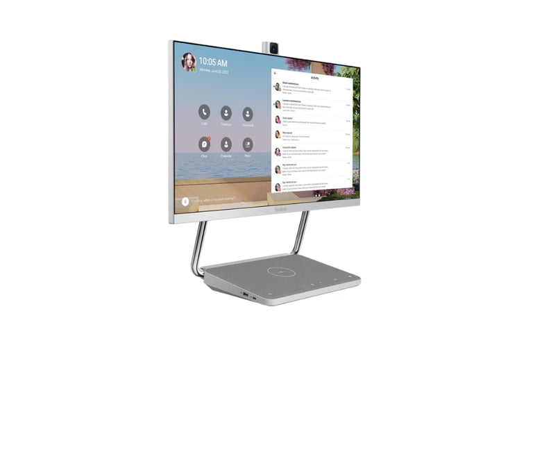 Yealink DeskVision 24, Microsoft Teams için optimize edilmiş, video konferans, beyaz tahta (whiteboard) ve ikinci ekran işlevlerini bir arada sunan hepsi bir arada bir masaüstü ekranıdır.